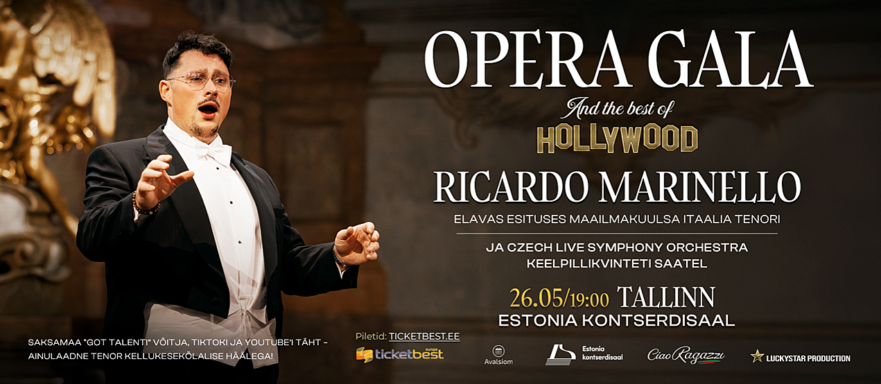 Maailmakuulus tenor Ricardo Marinello esineb esmakordselt Tallinnas! Tema hääl on kui kellalöök — selge, võimas ja läbitungiv, tekitades kananaha juba esimestest nootidest.